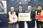 [아시아통신] 전주시의회가 기부문화 확산을 위해 적십자 특별회비 전달에 동참했다. 전주시의회는 8일 의장실에서 남관우 의장과 대한적십자사 전북특별자치도지사 김홍식 회장, 대한적십자사봉사회 최봉만 완산지구 협의회장, 라태원 덕진지구 협의회장 등이 참석한 가운데 2026년도 적십자 특별회비 전달식을 가졌다. 이날 전달된 특별회비(100만원)는 긴급재난구호와 지역사회 봉사, 취약계층 지원 등에 사용된다. 남관우 의장은 “인도주의를 바탕으로 헌신적 봉사활동에 앞장서고 있는 적십자사의 활동에 깊이 감사를 드린다”며 “전주시에 나눔과 봉사의 아름다운 꽃이 활짝 피어날 수 있도록 전주시의회도 최선을 다하겠다”고 말했다. 이에 김 회장은 “적십자 특별회비로 나눔문화 확산에 앞장선 전주시의회에 감사드리며, 앞으로도 적십자는 도움의 손길이 필요한 곳에 늘 함께하겠다”고 화답했다.