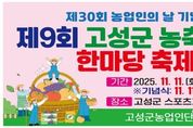 [아시아통신] 고성군은 11월 11일부터 12일까지 고성군스포츠타운 4구장에서 ‘제30회 농업인의 날 기념, 제9회 고성군 농축산물 한마당 축제’를 개최한다. 고성군농업인단체협의회가 주관하고 고성군이 후원하는 이번 행사는 농업인의 긍지와 자부심을 높이고, 지역 농축산물의 소비를 촉진하기 위해 마련됐다. 축제는 기념식과 축하공연, 농축산물 홍보 및 판매, 무료시식회, 전시·체험 행사, 귀농귀촌·청년농업인·고향사랑기부제 홍보 등으로 구성된다. 첫째 날인 11월 11일 오전 10시부터 농축산물 직거래장터와 전시행사가 열리며, 오전 10시 30분에는 여성농민회의 오카리나 연주와 퓨전국악 ‘화온’의 식전공연으로 축제의 막을 열고, 오전 11시에는 기념식이 진행된다. 기념식에서는 내빈소개, 개회선언, 국민의례, 유공자 시상(군수 2명, 의장 2명, NH농협고성군지부장 1명, 감사패 2명) 등이 이어지며, 기념사와 축사 후에는 ‘고성에는 고성쌀 강정’ 농업인의 날 축하 퍼포먼스가 진행될 예정이다. 오후에는 맥주 빨리마시기 이벤트를 시작으로 트로트가수 한아름, 윤이나, 서백의 무대와 생활개선회의 난타