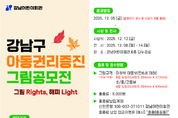 [아시아통신] 꿈이 모이는 도시, 미래를 그리는 강남구(구청장 조성명)가 세계 아동의 날(11월 20일)을 기념해 18세 미만 어린이와 청소년을 대상으로 ‘2025년 강남구 아동권리증진 그림 공모전’을 개최한다. 이번 공모전은 아동과 청소년이 그림이라는 창의적 매체를 통해 자신의 권리를 자유롭게 표현하고, 아동 권리에 대한 지역사회의 공감과 인식을 확산하기 위한 취지로 마련됐다. 공모 주제는 ▲아동의 눈으로 바라본 행복(내가 가장 행복한 순간, 내가 원하는 우리 동네 상상 놀이터) ▲아동이 생각하는 아동 권리 보호(아이들이 존중받는 세상, 아이들이 안전하고 행복한 세상) ▲아동이 행복한 우리 마을(내가 꿈꾸는 강남의 모습, 어른들이 우리를 지켜줬으면 할 때) 등 3가지 중 한 가지를 선택해 참여할 수 있다. 미취학 아동은 8절지, 초·중·고등부는 4절지 규격에 맞춰 그림을 제출하면 된다. 작품 접수는 11월 12일부터 14일까지 3일간 진행되며, 응모자는 작품과 신청서를 강남어린이회관에 직접 방문하거나 등기우편으로 제출하면 된다. 공모전 관련 세부 사항은 강남어린이회관 홈페이지에서 확인할 수 있다. 심사는 미취학 아동 및 초등부와 중·고등부로 나눠 주제 적합