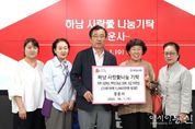 [아시아통신] 지난 3일, 청정하남시니어협회(청시회)는 성금 100만원을 하남시에 전달하고 기탁식을 가졌다. 이날 기탁식에는 이현재 하남시장을 비롯해 박규섭 회장 등 관계자들이 참석하여 자리를 빛냈다. 박규섭 회장은 “추석 명절을 맞아 소외된 이웃들에게 정을 나누고, 조금이나마 도움이 되길 바라며 경제적으로 어려운 시기를 잘 극복해 나갔으면 한다”고 말했다. 이현재 하남시장은“ 따뜻한 마음을 나눠주시는 청정하남시니어협회에 깊이 감사드리며 기탁해 주신 성금은 관내 어려운 이웃에게 소중히 전달하겠다”고 전했다. 이날 기탁된 성금은 관내 취약계층에게 배부될 예정이다.
