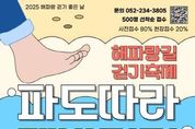 [아시아통신] 울산 동구가 오는 10월 26일 오전 9시부터 11시 30분까지 일산해수욕장 상설무대 일원에서 ‘2025 해파랑길 걷기 축제 – 파도 따라 맨발 걷기’를 개최한다. 이번 행사는 문화체육관광부와 한국관광공사가 주관하는 ‘코리아둘레길 쉼터 및 지역 관광 프로그램 연계 공모사업’의 하나로 추진되는 것으로, 시민과 관광객이 함께 참여하는 가을 걷기 축제이다. ‘파도 따라 맨발 걷기’는 해파랑길 8코스 구간 중 일산해수욕장에서 대왕암공원까지 약 2km 구간을 따라 맨발로 걷는 체험형 행사로, 파도 소리와 모래의 촉감을 직접 느끼며 자연과 교감할 수 있도록 기획됐다. 특히 해파랑길 8코스는 한국관광공사가 선정한 ‘자연환경이 아름다운 첫 번째 추천 코스’로, 일산해수욕장의 백사장과 대왕암 송림이 어우러진 동구의 대표적인 명품 길로 꼽힌다. 행사 당일에는 공연, 체험 부스, 마켓 등 다양한 부대행사도 함께 진행되며, 참가자에게는 타포린 가방, 핀 버튼, 미니 생수, 간식 세트 등 기념품이 제공된다. 참가비는 1인당 5,000원이며, 사전 접수 80%, 현장 접수 20% 비율로 총 500명을 선착순