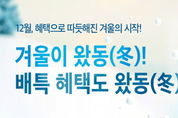 [아시아통신] 경기도와 경기도주식회사가 공동 운영하는 경기도 공공배달앱 배달특급이 겨울을 맞아 12월 한 달간 ‘겨울이왔동(冬)’ 소비자 할인 프로모션을 진행한다. ‘겨울이왔동(冬)’ 소비자 할인 이벤트는 ‘통 큰 세일’ 프로모션 종료 등으로 아쉬움이 남는 소비자들의 편익을 증대하기 위해 마련했다. 배달 특급 전체 회원, 전체 서비스 지역을 대상으로 1만2천원 주문에 사용가능한 3천원 할인 쿠폰을 예산 소진시까지 1일 1인 1회 지급한다. 한편 배달특급의 모든 이벤트는 해당 상단 배너 기능을 통해 확인 가능하며, 지역에 따라 할인 조건과 금액이 달라질 수 있어 사전 확인이 필요하다.