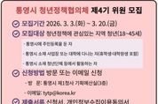 [아시아통신] 통영시는 '통영시 청년 기본 조례' 제12조에 따라 청년 의견 수렴과 정책 모니터링을 위한 ‘통영시 청년정책협의체’ 제4기 위원 20명을 공개 모집한다고 4일 밝혔다. 청년정책협의체는 청년이 직접 정책 의제를 발굴·제안하고, 청년정책 추진 과정에 참여하는 정책 파트너 기구다. 이번 제4기 협의체는 공개모집 20명과 통영시청년센터가 주관하는 통영청년학교(가칭) 졸업자 10명 이내를 포함해 총 30명 내외로 구성될 예정이다. 모집 대상은 공고일 기준 18세 이상 45세 이하 청년으로 ▲통영시에 주민등록을 둔 자 ▲통영시 소재 사업장 또는 대학 재학(휴학생·대학원생 포함) ▲통영시 소재 청년단체 활동자 중 하나 이상을 충족하면 신청할 수 있다. 위원으로 위촉되면 2년간 활동하며, 청년정책 의제 발굴 및 제안, 정책 모니터링, 토론회·행사 참여 등 다양한 활동을 수행하게 된다. 분과는 일자리(취업·창업), 청년복지(주거·복지), 문화소통(문화·참여) 3개 분야로 운영된다. 모집 기간은 오는 20일까지이며, 통영시청 제1청사 기획예산실 인구청년정책팀 방문 또는 이메일로
