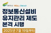 [아시아통신] 여주시는 지난 7월 19일부터 ‘정보통신설비 유지보수 ‧ 관리제도’를 본격 시행하고있다고 밝혔다. 이번 제도는 일정 규모 이상의 건축물에서 통신설비가 노후되거나 방치돼 시민 불편이 발생하는 사례를 예방하기 위해 마련된 것으로, 통신설비의 체계적 관리와 안전 강화를 목표로 하고 있다. 새 제도에 따라 연면적 5천미터 이상 건축물은 전문 자격을 갖춘 정보통신기술자를 유지보수 ‧ 관리자로 선임하거나 전문업체에 위탁해야 하며, 관리자는 연 2회 이상 정기점검과 연 1회 성능검사를 의무적으로 실시해야 한다. 점검 결과는 표준 서식에 따라 5년간 보관해야 하며, 여주시의 요청 시 제출해야 한다. 이를 이행하지 않을 경우 최대 300만원의 과태료가 부과될 수 있다. 단계적 유예기간 부여... 기존 건축물도 순차 적용 기존 건축물의 경우 제도 시행에 따른 부담을 최소화하기 위해 규모별 유예기간이 부여됐다. 현재(2025년 10월기준) 연면적 3만㎡이상 건축물은 유지보수 관리자를 선임하고 점검계획을 수립하여야 한다. 이어 연면적 1만㎡이상 ~ 3만㎡미만 건축물은 2026년 7월 18일까지