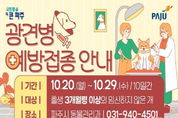 [아시아통신] 파주시는 반려견을 동반한 야외활동이 잦아지는 가을을 맞아 오는 20일부터 29일까지 생후 3개월 이상의 임신하지 않은 개를 대상으로 광견병 예방접종을 실시한다고 밝혔다. 광견병은 바이러스에 의해 사람과 동물 모두에게 감염될 수 있는 인수공통전염병으로, 잠복기가 상당히 길고 증세가 나타날 경우 치사율이 매우 높기 때문에 사람과 반려동물 모두를 위해 반려견은 매년 1회 반드시 예방접종할 것을 적극 권장하고 있다. 시는 하반기 광견병 예방사업을 위해 예방백신 4,500마리 분을 무상 지원하며, 예방접종을 희망하는 반려견 보호자는 33개 지정 동물병원을 방문해 시술비 1만 원만 부담하면 접종이 가능하다. 참여 동물병원 목록은 파주시청 누리집 공고문을 통해 확인할 수 있다. 동물병원이 없는 읍면지역은 시에서 직접 수의사를 파견해 순회접종을 진행하며, 이 경우 접종비 전액을 시에서 지원할 방침이다. 읍면지역 순회접종 일정은 해당 읍면 행정복지센터 산업팀에 문의하면 된다. 아울러 파주시는 야생동물의 광견병 전파를 막기 위해 광견병 미끼백신을 너구리 등 야생동물이 자주 출몰하는 관내 야산에 살포하는
