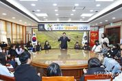 [아시아통신] 경주시는 지난 29일 시청에서 ‘제56기 열린시장실’을 열고 관내 초등학교 3~6학년 학생 20여 명이 참여한 가운데 시정 체험 프로그램을 성황리에 진행했다고 밝혔다. 이번 열린시장실은 초등학생들이 시정 현장을 직접 경험하며 지방자치의 가치를 이해하고, 미래 지역사회의 주역으로 성장할 수 있도록 마련된 체험형 프로그램이다. 특히 APEC 정상회의 이후 경주시의 발전 방향을 어린이들의 관점에서 함께 고민하는 자리로 의미를 더했다. 학생들은 시장실 견학과 시정 홍보영상 시청을 시작으로 ‘APEC 이후의 경주시 정책’을 주제로 모의 회의를 진행했다. 시장, 부시장, 부서장 역할을 맡아 시정 현안에 대해 의견을 제시하며, 관광 활성화, 환경 보전, 교통 개선 등 시민 생활과 관련된 다양한 정책 아이디어를 내놓았다. 또한 동궁원을 방문해 ‘꽃누르미 체험’과 식물원 견학 프로그램에 참여했다. 꽃누르미 체험을 통해 자연과 생태의 소중함을 배우고, 열대식물과 생태환경을 둘러보며 지역 관광명소에 대한 이해를 높였다. 주낙영 경주시장은 “어린이들이 시정에 관심을 갖고 정책을 고