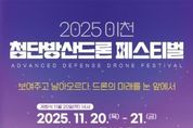 [아시아통신] 이천시는 ‘이천의 하늘이 바뀌면, 대한민국의 산업 지도가 바뀔 것’이라는 비전을 가지고 드론페스티벌을 연다. 이천시는 오는 11월 20일부터 21일까지 이틀간, 부발읍 종합운동장(무촌리 52) 일원에서 ‘2025 이천 첨단방산드론 페스티벌’을 개최한다. 개막식은 11월 20일 14:00로 드론의 미래를 보는 첫걸음을 내딛을 예정이다. ‘보여주고, 날아오르다 – 드론의 미래를 눈앞에서’라는 슬로건 아래 열리는 이번 행사는 국내외 첨단 드론 기업들이 참여해 국방, 산업, 물류 등 다양한 분야의 드론 기술을 선보이는 실증형 전시회로 진행된다. 특히 올해 처음으로 개최되는 이번 페스티벌은 드론 산업의 기술력과 발전 방향을 한눈에 볼 수 있는 자리로, 이천시가 미래 첨단산업 중심 도시로 도약하는 계기가 될 것으로 기대된다. 올해 행사에는 국내외 30개 기업, 50여 부스가 참여해 감시정찰, 자폭드론, 안티드론, 멀티기능 드론 등 다양한 제품과 기술을 전시하며, 국방·소방·배송 등 다양한 분야의 응용 기술을 시연한다. 시민이 직접 참여할 수 있는 체험 프로그램도 풍성하다. 드론 축구, 드론 배달 실증 체험,