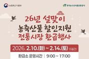 [아시아통신] ■ 2026년 설맞이 농축산물 할인지원 전통시장 환급행사 - 2026.2.10.(화)~2.14.(토) (5일간) - 환급소 운영시간 9:00~17:00 ※ 운영시간은 시장상황에 따라 변경될 수 있음 · 행사기간 내, 1인 2만 원 한도 행사기간 내 구매 영수증 금액 합산 가능/ 추가, 중복 수령 불가 - 3만 4000원 이상 구매 시 온누리 상품권 1만 원 환급 - 6만 7000원 이상 구매 시 온누리 상품권 2만 원 환급 예산 소진 또는 부정환급 적발 시 조기종료 ■ 환급절차 ① 국내산 신선 농축산물 구매 후 영수증 수령 ② 점포주가 농축산물 환급 앱에 판매 정보 입력 ③ 구매 영수증, 본인확인 수단(휴대전화) 지참 후, 환급소 방문 ④ 구매한 영수증 및 본인확인 후 상품권 수령 ■ 행사대상 참여 점포에서 국산 신선 농축산물 구매한 고객 ■ 불가항목 · 본인확인 수단(휴대전화) 미지참 시 환급불가 · 국산 신선 농축산물이 아닌 품목 · 행사 미등록 점포 구매 영수증 · 재발행 영수증, 간이 영수증 환급 · 행사 기간 내 구매가 아닌 영수증 · 구매 고객이 아닌 대리인(ex. 구매는