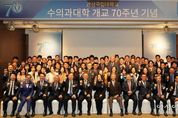 [아시아통신] 경상국립대학교 재경 수의과대학 동문회(회장 하지영)는 11월 6일 저녁 서울신라호텔 영빈관에서 ‘70년 개척의 자부심, 100년을 향한 새로운 비상’이라는 슬로건으로 ‘수의과대학 개교 70주년 기념행사’를 개최했다. 행사에는 권진회 경상국립대학교 총장, 김상현 수의과대학 학장, 황태성 동물병원장, 김원 재경 경상국립대학교 총동문회장, 허주형 대한수의사회장, 정병곤 한국동물약품협회장, 허영 한국사료협회장, 이영락 부산시수의사회장 등 경상국립대학교 관계자와 경상국립대학교 동문 100여 명이 참석했다. 또한 황정연 서울시수의사회장, 박정현 인천시수의사회장, 최이돈 한국동물병원협회장, 김지헌 아시아고양이수의사회장, 강종일 한국수의임상피부학회장, 윤원경 한국수의심장협회장 등 수의계 주요 인사들도 참석해 자리를 빛냈고 수의과대학 서성민 학생회장, 손예찬 부회장도 자리했다. 강민국 국회의원(경남 진주시을), 서천호 국회의원(경남 사천·남해·하동)도 영상과 축전을 보내 경상국립대학교 수의과대학 개교 70주년을 축하했다. 이날 행사에서는 허주형 대한수의사회장(85학번)에게 ‘자랑스러운 경상국립대인상’