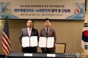 [아시아통신] 제주특별자치도가 미국 동부 50만 한인을 대표하는 뉴욕한인회와 손잡고 경제·관광·문화·교육 분야 글로벌 협력 네트워크를 본격 가동한다. 제주도는 19일 오후 4시(현지시간) 미국 워싱턴DC 소재 하얏트 플레이스 호텔에서 뉴욕한인회와 상생 교류발전 업무협약을 체결했다. 뉴욕한인회는 뉴욕 대도시권과 뉴저지, 코네티컷 일부 지역 약 50만 한인을 대표하는 비영리단체로 한인 권익보호와 문화·경제·교육·복지사업, 이민자 지원 등을 담당한다. 제주도가 미주지역 한인회와 협약을 맺은 것은 지난해 10월 미주한인회총연합회에 이어 두 번째다. 협약식에는 오영훈 지사와 이명석 뉴욕한인회장을 비롯한 양측 관계자 20여 명이 참석해 다양한 분야에 대한 구체적인 협력방안을 논의했다. 주요 내용은 △제주형 휴가지 원격근무(워케이션)·배움여행(런케이션) 프로그램 홍보 및 참여 촉진 △관광·지역경제 활성화를 위한 네트워크 협력 사업 △협약기관 간 지속가능한 공동체 발전 및 상생 기반 마련 등이다. 오영훈 지사는 “뉴욕한인회와의 업무협약은 한인사회 발전과 고국 연결을 강화하는 계기”라며 “
