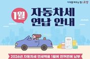 [아시아통신] 고양특례시 덕양구는 2026년 1월 자동차세 연납 납부서 63,688건을 발송하고, 오는 2월 2일까지 신규 연납 신청을 받는다고 15일 밝혔다. 자동차세 연납 제도는 매년 6월과 12월에 부과되는 정기분 자동차세를 1월에 한 번에 납부할 경우, 2월부터 12월분 세액의 5%를 공제해 주는 제도다. 이를 통해 납세자는 연세액 기준 약 4.5%의 절세 효과를 누릴 수 있다. 연납 신청은 매년 3월, 6월, 9월에도 가능하지만, 잔여기간에 따라 공제율이 차등 적용되므로 1월에 납부해야 가장 높은 할인 혜택을 받을 수 있다. 전년도에 자동차세를 연납한 차량은 소유권 변동이 없다면 별도의 신청 없이 공제된 금액이 기재된 납부서를 받아볼 수 있다. 다만, 신규 차량 취득자나 처음 연납을 신청하려는 납세자는 기한 내에 신청해야 한다. 자동차세 연납은 위택스를 통한 온라인 접수나 관할 구청 세무과로 전화 또는 방문 신청할 수 있다. 신청 후 납부하지 않더라도 오는 6월과 12월 정기분으로 과세되며 이에 따른 불이익은 없다. 납부는 전국 모든 은행의 CD/ATM기, 위택스, 전용 가상계