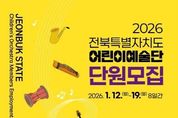 [아시아통신] 전북특별자치도가 8일 예향의 전통을 잇고 미래 문화예술 인재를 발굴하기 위해‘2026년도 전북특별자치도 어린이예술단’신규 단원 모집에 나선다. 모집 대상은 전북지역에 거주하는 초등학교 2학년부터 중학교 3학년까지의 어린이로, 음악과 예술에 재능과 관심이 있는 학생이라면 누구나 지원할 수 있다. 접수는 오는 1월 12일부터 19일까지 8일간 전북특별자치도청과 전북특별자치도립국악원 홈페이지를 통해 온라인으로 진행된다. 실기 및 면접 전형은 1월 24일 전통문화체험전수관에서 열리며, 실기(80점)와 인터뷰(20점)를 합산해 최종 합격자를 선발한다. 선발된 단원들은 전북특별자치도 어린이예술단원으로 활동하며, 매주 파트별 오케스트라 합주 교육과 체계적인 음악 교육을 받게 된다. 특히 예술단원은 정기 기획공연과 국내·외 초청공연 등 연 3회 이상의 무대 경험은 물론, 방학 기간 하계 집중교육과 신학기 캠프 등 다양한 교육·공연 프로그램에 참여할 수 있다. 예비단원 과정은 저학년 어린이의 기량과 합주 역량을 단계적으로 높이는 데 중점을 두고 운영되며, 평가를 거쳐 예술단원으로 승급할 수 있는 기회
