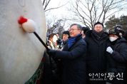[아시아통신] 진교훈 서울 강서구청장은 1일 병오년(丙午年)을 맞아 열린 ‘개화산 해맞이’ 행사에서 주민들과 함께 희망찬 새해 첫날을 시작했다. 진 구청장은 행사장 곳곳에서 주민들에게 새해 인사를 전하고 대북을 타고하며 강서구민의 안녕을 기원했다. 진교훈 구청장은 “지난 한 해 동안 강서구의 발전과 변화의 여정에 함께 해주신 강서구민 여러분께 존경과 감사의 인사를 드린다”며 “병오년 새해에는 지치지 않는 열정과 도전, 그리고 도약을 상징하는 붉은 말처럼 강서구민 모두가 힘차게 전진하는 한 해가 되시기를 기원한다”고 말했다. 이어 “구민과 함께 도약하는 강서, 소외되는 이웃 없이 모두가 행복한 상생 도시 강서를 만들겠다”며 “구민 여러분 모두의 가정에 건강과 행복, 기쁨이 항상 함께 하기를 바란다”고 말했다. 이날 개화산 정상은 일출 명소라는 명성에 걸맞게 새해 첫 일출을 보려는 3천여 명의 주민들로 북적였다. 공식 행사에 앞서 문인협회의 희망의 메시지를 담은 시 낭송과 국악협회의 길놀이 공연 등이 잇따라 펼쳐졌다. 행사장 한편에서는 인공지능(AI)을 활용한 신년운세와 새해