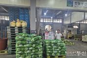 [아시아통신] 안산시 농수산물도매시장은 지난 2일 도매시장 내 중도매인인 반월농산(대표 노영현)으로부터 추석 명절을 맞이해 배추 1,800kg을 기탁받았다고 3일 밝혔다. 안산시농수산물도매시장은 2015년부터 푸드뱅크 사업을 통해 도매시장법인, 중도매인으로부터 잉여 농산물(채소, 과일 등)을 후원받아 지역사회 취약계층에 도움을 주고 있다. 노영현 대표는 “명절을 맞이해 경기 불황과 높은 물가로 어려움을 겪고 있는 이웃들에게 조금이나마 도움이 됐으면 한다”며 “지속적으로 소외계층을 돕는 일에 꾸준히 동참하겠다”고 말했다. 이범열 농업기술센터 소장은 “우리 지역의 어려운 이웃들과 상생하는 마음으로 후원을 해주신 중도매인에게 감사드린다”며 “앞으로도 취약계층과 동행하고 나눔 문화를 실천할 수 있도록 노력하겠다”고 말했다.