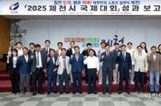 [아시아통신] 제천시는 지난 1일 제천시청 5층 청풍호실에서 '2025년 제천시 국제대회'성과보고회를 개최했다. 보고회에는 김창규 제천시장, 박영기 제천시의회 의장, 김경석 대한롤러스포츠연맹 회장(이상 공동조직위원장), 장재돈 대한체조협회 고문과 안성국 제천시체육회장(집행위원장), 오재성 제천시체조협회장, 최호열 제천시롤러스포츠연맹회장(이상 공동 사무총장) 및 유관기관, 단체장 3명과 종목단체 임원 및 회원 50여 명이 참석했다. 이날 보고회는 올해 제천시에서 열린 국제대회인 '2025 기계체조 아시아선수권대회(6.1.~6.15.)'와 '2025 아시아 롤러스케이팅 선수권대회(7.19.~7.30.)'의 성공 개최를 기념하고, 대회 관계자들의 노고를 격려하며 성과를 공유하는 자리였다. 행사는 유공 기관·단체에 대한 감사패 수여와 유공자 표창 순으로 진행됐다. 제천시장 감사패는 대회 유치와 개최를 주관한 ▲대한롤러스포츠연맹(회장 김경석) ▲제천시롤러스포츠연맹(회장 최호열) ▲대한체조협회(공석) ▲제천시체조협회(회장 오재성)에 수여됐다. 또한, 두 대회를 실질적으로 준비하고 집행한 ▲제천시체육회(회장 안성국), 지역