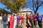 을 햇살이 따뜻하게 내리쬐는 가운데 시민들과 함께하는 거리 문화공연이 열려 지역 주민들에게 특별한 문화의 시간을 선사했다. 수원특례시에서 마련한 ‘시민과 함께하는 음악캠프 힐링콘서트’가 야외 무대에서 진행되며 많은 시민들의 관심을 모았다. 행사에는 다양한 공연자들과 관계자들이 함께 참여해 화기애애한 분위기를 만들었다. 붉은색, 보라색, 흰색 등 화려한 의상을 입은 공연자들은 밝은 표정으로 시민들과 인사를 나누며 공연의 의미를 더했다. 특히 각기 다른 개성과 스타일의 의상이 어우러지며 행사장의 분위기를 한층 활기차게 만들었다. 무대 뒤편에는 ‘생활체육 에어로빅교실 운영’이라는 현수막과 함께 가을 단풍이 물든 나무들이 어우러져 계절의 정취를 더했다. 맑은 가을 하늘과 노랗게 물든 나무 아래에서 진행된 공연은 시민들에게 편안한 문화 휴식의 시간을 제공했다. 이날 행사에는 공연자들뿐 아니라 지역 주민들과 관계자들도 함께 모여 기념 촬영을 하며 행사의 의미를 나누는 시간을 가졌다. 참가자들은 서로 환하게 웃으며 포즈를 취하고 손가락 하트를 만드는 등 즐거운 분위기를 연출했다. 특히 이번 행사는 공연과 더불어 시민들이 함께 어울리고 소통할 수 있는 문화의 장을 마련했다