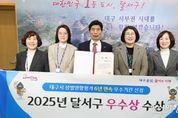 [아시아통신] 대구 달서구는 대구시가 주관한 ‘2025년 구·군 성별영향평가’에서 우수상을 수상했다고 19일 밝혔다. 이번 수상으로 달서구는 6년 연속 성별영향평가 우수기관으로 선정되며, 성평등 정책 추진을 위한 지속적인 노력과 성과를 인정받았다. 달서구는 조례 제·개정 과정에서 성별영향평가를 실시하고 이를 적극 반영해 왔으며, 정책사업에 대한 컨설팅과 점검을 강화해 2025년 한 해 동안 조례 35건과 사업 18건에서 개선 성과를 달성했다. 또한 ‘일상 속 양성평등 언어 사용하기’ 캠페인 등 시민들이 체감할 수 있는 생활밀착형 정책을 꾸준히 추진하며 성평등 문화 확산에도 힘쓰고 있다. 이태훈 달서구청장은 “달서구가 6년 연속 성별영향평가 우수기관으로 선정된 것은 여성친화도시 달서구의 성과이자 쾌거”라며 “앞으로도 주요 정책과 사업이 성별에 미치는 영향을 면밀히 분석하고 개선해 실질적인 성평등을 실현해 나가겠다”고 말했다.