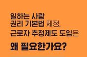 [아시아통신] 일하는 사람 권리 기본법 제정, 근로자 추정제도 도입은 왜 필요한가요? 제대로 알려드립니다. Q1. 일하는 사람 권리 기본법 제정, 근로자 추정제도 도입은 왜 하는건가요? AI 혁신, 플랫폼 경제 급성장 등 대전환의 시대에 새롭게 발생하는 모든 형태의 일하는 사람을 보호하기 위함입니다. Q2. 그럼 플랫폼종사자, 프리랜서 등은 모두 근로기준법상 근로자가 되는 건가요? 근로기준법상 근로자의 개념이 바뀌거나 확대되는 것은 아닙니다. Q3. 근로기준법상 근로자 개념이 확대되는 게 아니라면, 플랫폼종사자, 프리랜서 등은 보호되지 않는 것 아닌가요? 플랫폼종사자, 프리랜서도 일하는 사람 권리 기본법에 따라 보호될 수 있습니다. 또한, 근로자 추정제도를 통해 근로자임에도 입증하지 못해 근로자로 인정받지 못했던 사람들을 확실히 보호하면서, 가짜 3.3 감독을 통해 현장의 잘못된 관행을 바로 잡아나가겠습니다. Q4. 일하는 사람 권리 기본법은 선언적 규정이라고 하던데, 그럼 실효성이 없는 것 아닌가요? 기본법은 일하는 사람의 인권, 경제적 권리, 사회보장 권리 등을 규정하고 있으며, 경제적 권리 분