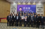 [아시아통신] 국회 기후에너지환경노동위원장 안호영 의원(전북 완주·진안·무주)은 10월 2일, 농협중앙회로부터 감사패를 수상했다고 밝혔다. 이날 감사패 전달식에는 농협경제지주 박서홍 대표이사, 농협중앙회 전북본부 이정환 본부장을 비롯한 농축협 조합장 25명이 참석해 축하의 인사를 전했다. 안호영 위원장은 "오늘의 감사패는 저 개인을 위한 것이 아니라, 농업과 농촌을 지키기 위해 모두가 함께 펼쳐온 노력이 모인 결과"라며 "농업 경쟁력 강화와 농촌의 지속가능한 발전을 위해, 그리고 농업인 여러분과 농협이 처한 현실을 늘 기억하며 성심껏 최선을 다하겠다"고 밝혔다. 전달식 직후 열린 농정간담회에서는 △가축분뇨 퇴·액비 제조시설 규제 개선 △AI 기반 스마트팜 기술 확충 등 농축업계 주요 현안에 대한 논의가 이어졌다. 안 위원장은 농가의 어려움 해소를 위해 전북은 물론 전국의 농업인들과 소통해 나가겠다고 밝혔으며, “국회 기후에너지환경노동위원장으로서 기후·환경·에너지와 농업이 조화를 이루는 길을 열어가기 위해 최선을 다하겠다”고 덧붙였다. 한편, 안 위원장은 지난해 9월 가축분뇨 퇴·액비 제