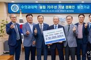 [아시아통신] 경상국립대학교 수의학과 김종섭(88), 최상용(83) 명예교수와 수의학과 87학번 동문회가 수의과대학 설립 70주년을 축하하면서 발전기금 각 1000만 원을 기부했다. 발전기금 전달식은 10월 15일 오후 3시 대학본부 접견실에서 권진회 총장, 오재신 국제처장, 황정숙 국제협력과장과 김종섭 명예교수, 최상용 명예교수, 수의학과 87동문회 김수진 총무(전 원동물병원장), 김상현 수의과대학장, 수의학과 조규완 교수 등이 참석한 가운데 열렸다. 김종섭 명예교수는 경상국립대학교 동문으로서 1963년 4월 1일 교수로 임용되어 농과대학 부속 가축병원장(85.3.~86.2.), 수의과대학 초대학장(89.9.~91.8.), 동물면역연구소장(92.4.~94.3.) 등을 역임하며 대학 발전을 위해 크게 기여하고, 2003년 2월 28일 정년퇴직했다. 김종섭 명예교수는 초대 수의과대학장을 맡아 대학 발전을 위한 초석을 마련했으며, 수의해부학 분야의 교육과 연구에 열정적으로 헌신해 수의학 발전에도 크게 이바지했다. 김종섭 명예교수는 그동안 대학발전기금 5000만 원을 출연하는 등 각별한 모교애를 실천해 왔다. &nb
