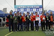 [아시아통신] 서울특별시의회 도시안전건설위원회 부위원장으로 의정활동하고 있는 김용호 시의원(국민의힘, 용산1)은 지난 10월 11일과 12일, 성동구 살곶이체육공원과 응봉축구장, 중랑물재생센터 축구장에서 열린 ‘서울시 7080 장수축구대회’에 참석하여 개회식에서는 축하 인사를 전하고, 폐막식에서는 70대B조 우승팀에게 직접 트로피와 우승컵을 수여했다. 이번 대회는 서울특별시와 서울특별시체육회가 후원하고 한국장수축구협회가 주최·주관했으며, 김 의원을 비롯해 한국장수축구협회의 김종민 이사장, 김길문 회장, 김창용 서울시지회장, 서울시 각 구 지회장과 선수단, 전현희·박주민·박성준 국회의원, 정원오 성동구청장, 구미경·옥재은 서울시의원 등 300여 명이 참석했다. 경기는 70대A조 6개 팀(성동·동작·이북5도·영등포·종로·9988서울), 70대B조 6개팀(광진·노원·양천·은평·중구·용산), 80대A조 6개팀(송파·동작·강서·영등포A·노원·8590북), 80대B조 6개팀(성동·광진·중랑·영등포B·제주·8590남부)이 총 24개 팀이 출전했으며, 경기결과 우승팀은 70대A조는 이북5도, 70대B조는 용산, 80대A조는 영등포A, 8