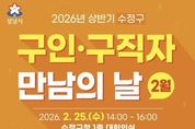 [아시아통신] 성남시는 시민의 취업을 지원하고 지역 기업의 인력난 해소를 위해 오는 2월 25일 오후 2시부터 4시까지 수정구청 1층 대회의실에서 ‘구인·구직자 만남의 날’ 행사를 연다. 이번 행사에는 12개 기업이 참여해 다양한 직종을 대상으로 구직자와 1대1 현장 면접을 진행하며, 총 55명을 채용할 예정이다. 참여 기업과 채용 직종은 △㈜현대에쓰앤에쓰(생산) △㈜케어마스터(객실관리, 미화) △노무법인 더보상 법률원(영업) △프리미안데이케어(요양보호사) △하이머시닝㈜(MCT 가공·조작) △㈜아람인테크(조리원) △케이엔자산관리㈜(보안) △공정노무법인(법률사무원 외근) △㈜대원버스(승무사원) △이엠플러스(생산, 자재관리) △파네트리(판매, 생산) △분당센트럴요양병원(조리)이다. 구직자는 이력서 등 구비서류를 지참해 행사 당일 현장을 방문하면 희망 기업의 부스에서 순서에 따라 면접에 참여할 수 있다. 시는 현장 면접과 함께 1대1 취업 컨설팅, 지문 적성 검사, 이력서 사진 무료 촬영 등 다양한 부대행사도 운영해 구직자의 취업 준비를 지원할 계획이다.