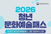 [아시아통신] ■ 2026 청년문화예술패스, 2월 25일부터 신청 - 19~20세 청년 최대 20만 원 청년 문화예술패스는 19~20세 청년*이 협력 예매처에서 공연, 전시, 영화 예매에 즉시 사용할 수 있는 이용권입니다. * 2026년 대상은 2006~2007년생 서울, 경기, 인천 등 수도권 지역 거주 청년→15만 원 비수도권 지역 거주 청년→20만 원 기존에는 사전에 한 개의 예매처만 선택해 이용할 수 있었는데요. 올해부터는 7개 예매처에서 공연과 전시, 영화 등 보고 싶은 작품의 관람권을 예매할 수 있습니다. NOL ticket, 티켓링크, yes24, Melon티켓, MEGABOX, 롯데시네마, CGV ■ 지원대상 대한민국 19~20세 청년 총 28만 명 생애 최초 1회 지원 ■ 신청기간 2026년 2월 25일~6월 30일 신청순 발급(지역별 예산 소진 시 해당 지역 발급 마감) ■ 신청방법 청년문화예술패스 누리집 회원가입 후 온라인 신청 ■ 문의 청년문화예술패스 고객지원센터 ☎1577-1968
