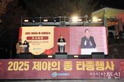 [아시아통신] 진주시가 지난 12월 31일 밤 진주성 호국종각 일원에서 ‘2025 제야의 종 타종 행사’를 성황리에 개최하고, 시민과 함께 희망찬 2026년 새해를 맞이했다. 이번 행사는 한 해의 끝자락에서 시민이 함께 모여 지난 시간을 되돌아보고, 새해의 소망과 다짐을 나누는 진주시 대표 새해맞이 행사로, 호국정신이 살아 숨 쉬는 진주성에서 진행돼 ‘송구영신(送舊迎新)’의 의미를 더했다. 행사에 앞서 진행된 식전 공연에서는 ▲문화예술그룹 온터의 대북 공연 ▲스트릿댄스팀 심장박동의 공연 ▲초청가수 디셈버 공연 ▲2025 진주가인가요제 대상 수상자 황인아 축하 공연 ▲진주레이디스싱어즈의 합창곡 ‘케데헌 골든’ 무대 ▲LED 트론댄스 공연 등이 펼쳐지며 행사의 분위기를 고조시켰다. 본행사는 새해의 염원을 담은 ‘호국의 종 파수의식’과 2026년 진주시 사자성어인 ‘만사대길(萬事大吉)’을 주제로 한 휘호 퍼포먼스가 진행됐다. 서예가 우제 강봉준 선생이 큰 붓으로 힘차고 웅장하게 휘호를 완성했으며, 이후 조규일 진주시장을 비롯해 박대출·강민국 국회의원, 백승흥 진주시의회 의장, 학생 대표 등 진주 시민 6명이 함께 이
