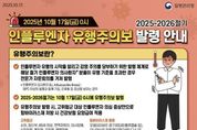 [아시아통신] 17일 질병관리청이 전국에 인플루엔자 유행주의보를 발령한 가운데, 안양시는 시민들에게 인플루엔자 예방접종과 개인 위생수칙 준수 독려에 나섰다. 이번 유행주의보는 전국 298개 표본 의료기관의 인플루엔자 의사환자 분율이 외래 환자 1천명당 12.1명으로, 절기 유행기준(9.1명)을 초과함에 따라 발령됐다. 이는 예년보다 이른 시기의 유행 시작으로, 소아⸱청소년 및 어르신층에서 감염증가가 예상된다. 만안구보건소 관계자는 “예방접종이 인플루엔자 예방의 가장 효과적인 수단”이라며 특히 어린이(2012년 1월 1일∼올해 8월 31일 출생자), 임산부, 만 65세 이상 어르신의 예방접종 참여를 당부했다. 현재 75세 이상 어르신(1950년 12월 31일 이전 출생) 대상으로 무료인플루엔자 접종이 진행 중이며, 70∼74세는 오는 20일, 65∼69세는 22일부터 무료접종을 받을 수 있다. 14세~64세 시민은 주소지와 관계없이 가까운 위탁의료기관에서 유료 접종이 가능하며, 위탁의료기관은 ‘예방접종도우미’누리집에서 확인 가능하다. 최대호 안양시장은“손씻기, 기침예절, 마스크 착용 등