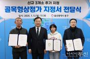 [아시아통신] 울산 동구는 1월 5일 오후 3시 30분 구청장실에서 골목상권 활성화를 위한 골목형 상점가 지정서 전달식 및 상인회장 간담회를 개최하고, 동구지역 골목형 상점가 3개소를 추가 지정했다. 이날 간담회에는 골목형상점가로 새롭게 지정된 전하이편한세상2단지 상가와 서부패밀리 상가 1·2동, 슬도활어직판장 등 3개소의 관계자가 참석했으며, 김종훈 동구청장은 상인회에 지정서를 전달하고 상인회의 건의 사항을 들으며 상권 활성화 방안을 논의했다. 한편, 동구는 지역 상권활성화를 위해 골목형 상점가 지원에 집중해 왔으며, 지난 2022년에 방어진활어센터를 골목형상점가로 최초 지정한 이후 2024년 12월에 1개소, 2005년 4월에 2게소, 8월에 2개소의 골목형상점가를 지정하고, 지난 12월에 3개소를 추가 지정해 이날 전달식을 가졌다. 이에 따라 동구지역의 골목형상점가는 총 9개소로 확대했다. 골목형 상점가는 2천㎡ 이내의 면적에 20개 이상 상가 밀집 등의 요건을 갖추면 지정될 수 있으며, 온누리상품권 가맹, 각종 공모사업 참여 등의 지원을 받을 수 있다. 김종훈 동구청장은 “상인회와의 지속적인