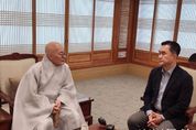 [아시아통신] 김종민 의원(세종시갑, 산자중기위)은 새해를 맞아 조계종 총무원장 진우스님을 예방했다. 국회 정각회 회원이며 UN세계명상의날 한국위원회 자문위원인 김종민 의원은 행정수도 세종비전과 연계한 글로벌 선명상 대중화를 통한 세종시의 국제도시 위상 제고 방안을 제안했다. 김 의원은 15일 조계종 총무원장 진우스님을 만나, “지난해 UN세계명상의날 한국위원회 자문위원으로 행사에 참여하면서 느꼈던 행정수도 세종 비전과 연계한 선명상사업의 글로벌 대중화 방안도 말씀드리고 새해 인사도 드릴 겸해서 찾아뵀다”며 인사를 전했다. 총무원장 진우스님도 새해 인사를 건넨 뒤 “국회에서 토론하는 모습을 기억하고 있다”며 “논리적 말씀을 잘해서 인상깊었다”고 말했다. 이어 “새해에도 건승하길 바란다”고 덕담했다. 진우 스님은 김 의원의 제안에 대해“국민들의 마음평화, 마음안보의 중요성을 며칠 전에 대통령을 만나서도 말씀드렸다”며 글로벌 선명상사업이 대중화된다면 세종시뿐만 아니라 우리 국민들과 세계 시민들까지 모두에게 도움이 되겠다는 취지로 화답했다. 김종민 의원은 앞으로도 행정수도 세종, 글로벌 선명