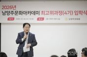 [아시아통신] 남양주시는 4일 남양주문화원사에서 남양주문화원이 개최한 ‘남양주 문화아카데미 4기 입학식’에 참석해 1년 과정의 문화·예술·인문학교육의 출발을 함께했다고 5일 밝혔다. 문화아카데미는 시민에게 수준 높은 인문 교양 강좌와 지역 역사 교육을 제공하는 남양주문화원의 대표 교육사업이다. 지역의 문화 리더를 양성하는 산실로 자리 잡으며 시민 인문역량 강화에 기여해 왔다. 행사에는 주광덕 남양주시장을 비롯해 김경돈 남양주문화원장, 진익주 총원우회장, 4기 신입 원우 등 40여 명이 참석했다. 행사는 개식과 국민의례를 시작으로 내빈 소개, 입학식사와 축사, 격려사, 기념촬영 순으로 진행됐다. 이어 입학증서 수여와 오리엔테이션을 통해 향후 교육 일정과 운영 방향을 안내했다. 문화아카데미는 3월부터 12월까지 1·2학기 과정으로 나눠 운영한다. 정규강의 20강좌와 특강 2강좌, 문화유산 탐방 및 워크숍 2회 등으로 구성했다. 1학기에는 △보이는 음악, 들리는 문학 △Trend Korea 2026 △케데헌과 한류의 미래 △남양주의 역사·문화 등 다양한 주제의 강의가 이어질 예정이다. 특히 남양주의 예술