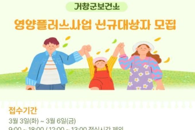 [아시아통신] 거창군은 임산부와 영유아의 영양 문제를 개선하기 위해 영양플러스사업 신규 대상자를 오는 3월 3일부터 6일까지 모집한다. 영양플러스사업은 빈혈, 저체중, 성장부진, 과체중 중 1가지 이상 영양 위험요인이 있는 기준 중위소득 80% 이하의 가구 중 임산부와 영유아(생후 66개월까지)를 대상으로, 대상자 특성에 맞춰 보충식품 제공과 함께 영양교육·영양상담을 지원해 영양문제 해소를 돕는 사업이다. 사업 수혜 기간은 최대 1년이며, 6개월마다 정기적인 영양평가를 통해 식습관 개선과 영양문제를 해소할 수 있도록 지원한다. 단, ‘저소득층 기저귀·조제분유 지원사업‘의 조제분유 지원을 받는 영유아, ’임산부 친환경 농산물꾸러미사업‘에 참여 중인 임신·출산·수유부(영유아 제외)는 중복으로 신청할 수 없다. 신청 방법은 신분증을 지참해 보건소에 방문 접수하면 되며, 임산부는 산모수첩 등 구비서류를 함께 제출해야 한다. 이정헌 보건소장은 “임신·영유아기는 평생 건강의 기초가 되는 시기”라며 “맞춤형 영양교육과 보충식품 지원으로 임산부와 영유아의 건강한 성장을 꾸준히 지원하겠다”고 말했다.