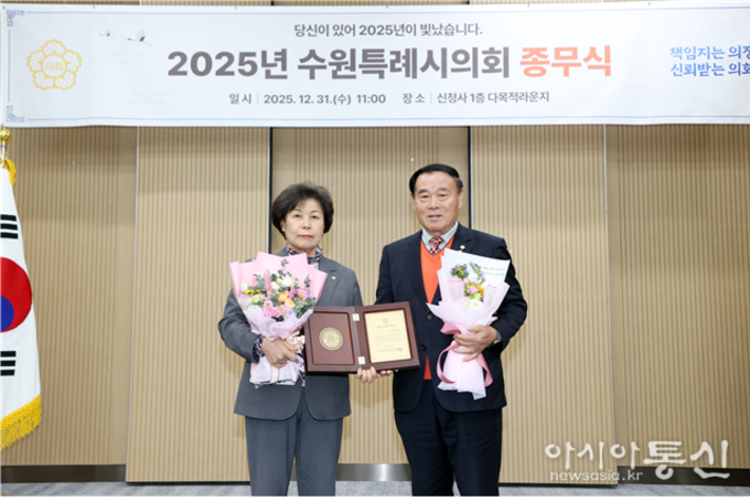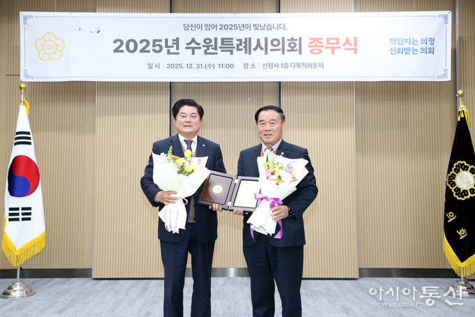 [아시아통신] 수원특례시의회 정영모 의원(국민의힘, 영화·조원1·연무동)은 2025년 12월 31일 수원특례시의회에서 경기도 시·군의회의장협의회로부터‘2025 의정활동 우수의원 표창’을 수상했다. 경기도 시·군의회의장협의회의 의정활동 우수의원 표창은 한 해 동안 책임 있는 의정활동과 제도 개선을 통해 지역사회 발전에 기여한 의원을 선정해 수여하는 상이다. 이번 수상에서 정영모 의원은‘행정 개선’분야에서, 선진의회 구현 및 지방자치 발전에 기여한 공로를 인정받아 표창을 수상했다. 정영모 의원은 제12대 수원특례시의회 보건복지위원회 소속 의원으로, 평소 활발한 의정 활동과 사회복지 정책 지원을 통해 지역 주민의 삶의 질 향상에 기여해 왔으며, 특히 고령층 복지 사각지대 해소를 위한 노력, 주민 생활환경 개선 사업 추진 등으로 지역사회로부터 두터운 신임을 받고 있다. 정영모 의원은“앞으로도 활발한 의정 활동을 통해 모두가 살기 좋은 수원시를 만드는 데 힘쓰겠다”라고 수상 소감을 밝혔다.