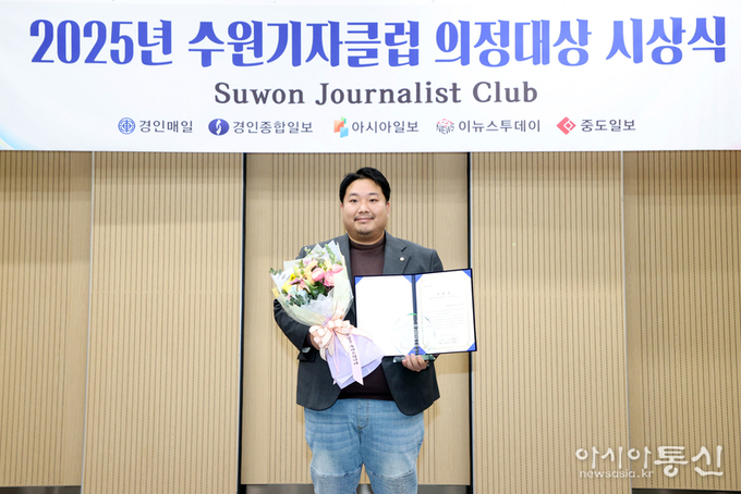 [아시아통신] 수원특례시의회 정종윤 의원(더불어민주당, 행궁·지·우만1·2·인계동)이 31일 수원시의회 다목적실에서 개최된 ‘2025년 수원기자클럽 의정대상 시상식’에서 의정대상을 수상하였다. 정종윤 의원은 청년 의원으로서 젊은 감각과 남다른 열정으로 지역사회와 제12대 수원시의회에 활력을 불어넣어 왔다. 이번 수상은 정 의원이 주민들의 숙원사업과 생활 속 문제 해결을 위해 끊임없이 현장을 누비며 적극 소통한 데 따른 것이다. 정 의원의 보여준 ‘젊은 정치인의 발로 뛰는 의정활동’은 새로운 정치에 대한 시민들의 기대를 실현하는 데 크게 공헌했다는 평가를 받았다. 정 의원은 “청년 의원도 지역과 현장에서 충분한 강점이 있다고 봐주셔서 매우 감사하다”면서, “새해를 하루 앞두고 뜻깊은 상을 받게 되었는데, 병오년 새해에도 지역을 위해 힘찬 말처럼 더 열심히 뛰겠다”고 전했다.