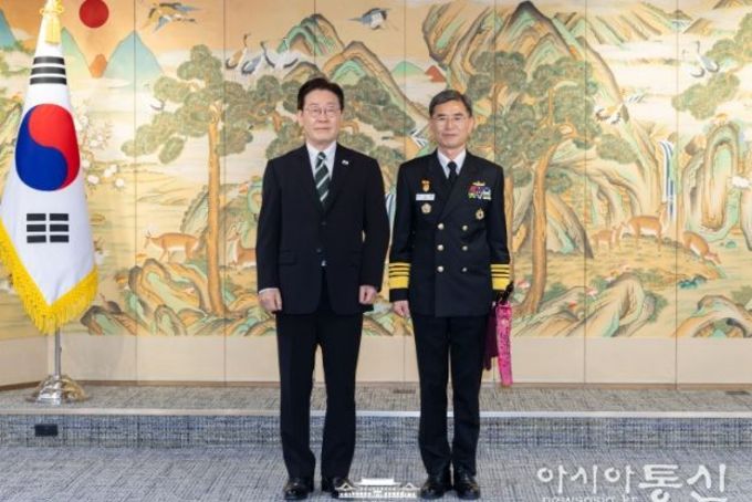 [아시아통신] 이재명 대통령은 3월 27일 서울 용산 국방부에서 김경률 신임 해군참모총장에게 삼정검 수치를 수여했다.