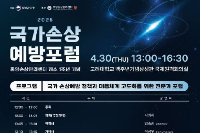 [아시아통신] 질병관리청은 중앙손상관리센터 개소 1주년을 맞아 4월 30일 고려대학교 백주년기념삼성관에서 「2026년 국가손상예방포럼」을 개최한다. 이번 포럼은 「손상 예방 및 관리에 관한 법률'(이하 「손상예방법」) 시행 이후 손상 문제가 개별 사고 대응이 아닌 국가 차원의 예방·관리 과제로 본격 전환되고 있음을 조명하고, 국가 손상관리체계 고도화전략을 논의하기 위해 마련됐다. 손상은 교통사고, 추락·낙상, 중독 등 외부 요인으로 발생하는 대표적인 공중보건 문제로, 예방을 통해 충분히 감소시킬 수 있다. 최근 교통사고는 감소하는 반면 추락·낙상 등 생활밀착형 손상은 증가하는 추세를 보이고 있으며, 고령화에 따라 손상으로 인한 질병부담도 확대되고 있어 국가 차원의 체계적인 대응 필요성이 강조되고 있다. 그간 손상 관련 사업은 부처별·사고유형별로 분산 추진되는 경향이 있었으나, 2024년 「손상예방법」 제정과 2025년 시행을 계기로 국가 및 지방자치단체 단위의 손상예방·관리 기반이 마련됐다. 질병관리청은 중앙손상관리센터를 중심으로 손상 예방 정책의 과학적 근거를 강화하고, 예방–대응–