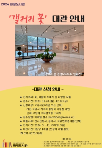 [아시아통신] 고양특례시 꽃 특성화 도서관 화정도서관이 시민을 위한 전시 공간 ‘갤러리 꽃’의 2024년 대관 신청을 접수한다.