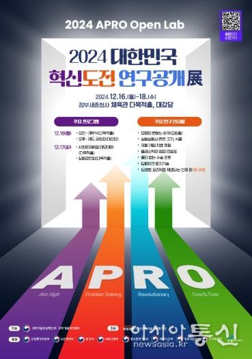 [아시아통신] 과학기술정보통신부는 12월 16일부터 12월 18일까지 정부세종청사 일대(대강당 및 세종청사체육관 다목적홀)에서 열리는 「2024 대한민국 혁신도전 연구공개전」이 개막했다고 밝혔다.
