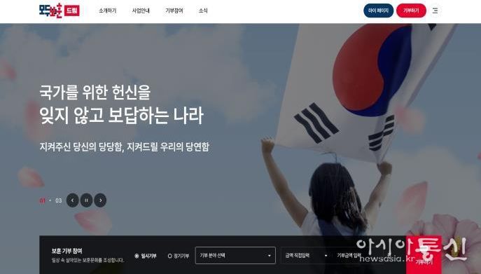 [아시아통신] 국가보훈부는 지난해 6월부터 시범운영을 진행했던 '모두의 보훈 드림'기부 프로젝트 추진을 위한 누리집이 2일 오전 9시부터 정식 개통한다고 밝혔다.