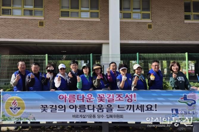 [아시아통신] 수원시 권선구 입북동 및 당수동 바르게살기운동위원회는 지난 27일, 당수초등학교 인근 도로변 화단에서 꽃길 가꾸기 환경정화 활동을 펼쳤다.