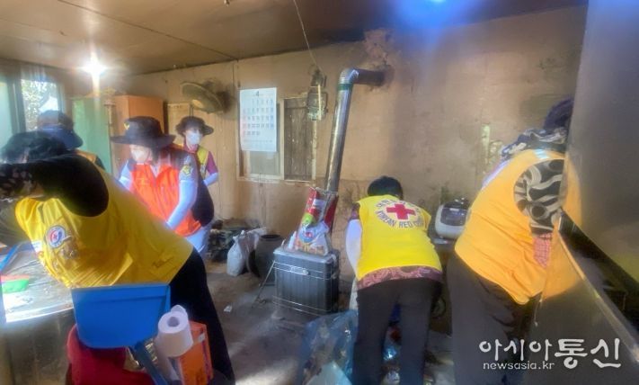 [아시아통신] 평택시 포승읍 적십자와 여성의용소방대가 연합해 지난 4월 29일 관내 무허가에 거주하는 독거노인의 주거환경 개선을 위한 대청소를 실시했다.