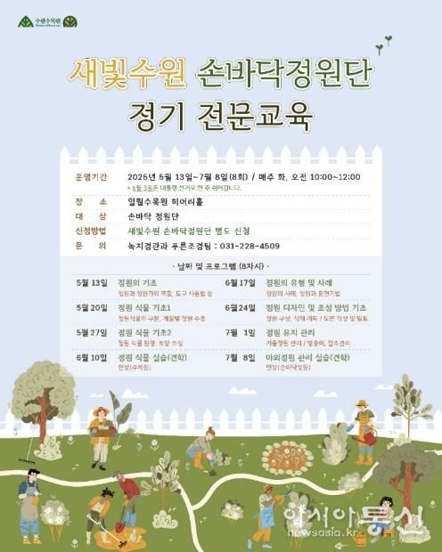 [아시아통신] 수원시가 시민 정원가의 역량 강화를 위한 ‘새빛수원 손바닥정원단 정기 전문교육’ 참가자를 추가 모집한다.