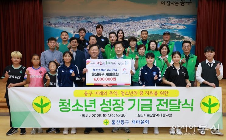 [아시아통신] 울산 동구 새마을회는 10월 1일 오후 4시 30분 울산 동구청에서 김종훈 동구청장과 학교 관계자가 참석한 가운데 청소년 성장 기금 전달식을 가졌다.