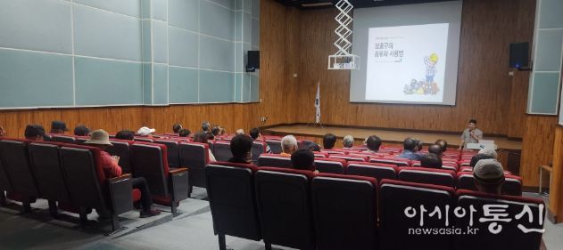[아시아통신] 고성군은 10월 15일 고성군 농업기술센터 친환경농업연구소 강당에서 녹지공원과 기간제근로자 30여 명을 대상으로 보호구 착용 및 안전수칙 준수를 철저히 하기 위한 교육을 실시했다.