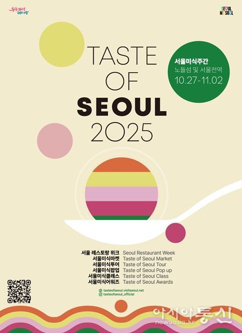 [아시아통신] 서울시가 천고마비의 계절을 맞아 매력적인 서울 미식 문화를 선보이는 ‘2025 서울미식주간(Taste of Seoul)’을 10월 27일부터 11월 2일까지 일주일간 노들섬을 포함한 서울 전역에서 개최한다.