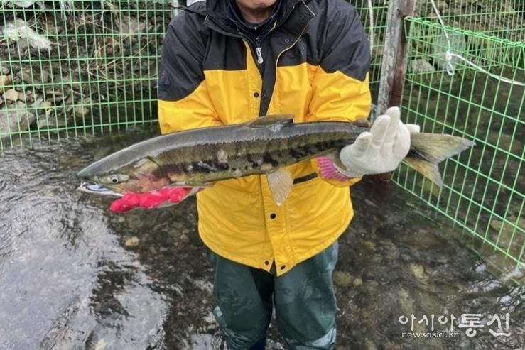 [아시아통신] 울주군 구영교 일대에서 산란을 위해 고향인 태화강으로 돌아온 회귀연어가 올해 처음으로 포획됐다.