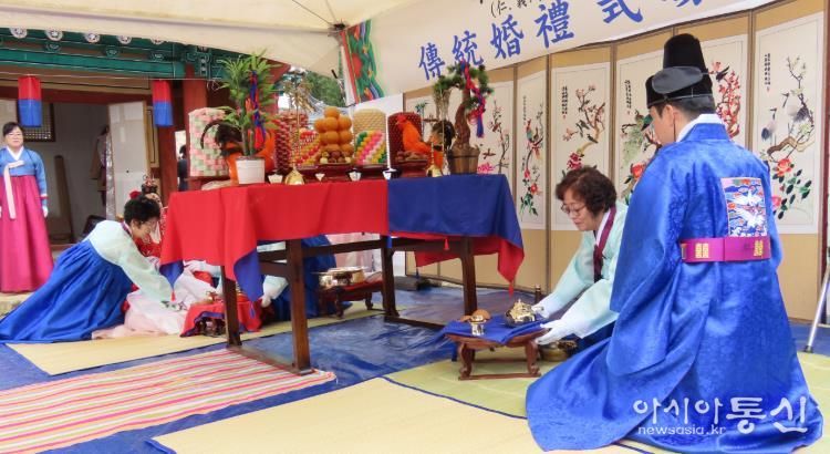 [아시아통신] 합천군 초계향교에서는 26일 오전 10시 초계향교 건립 이후 최초로 명륜당 앞에서 전통혼례가 열렸으며, 행사는 100여 명의 하객과 면민의 축하 속에서 진행됐다.