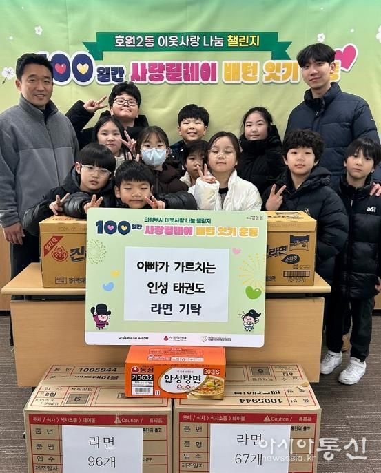[아시아통신] 의정부시 호원2동주민센터는 12월 31일 아빠가 가르치는 인성태권도 수련생들이 정성을 모아 취약계층을 돕기 위한 라면 310개를 기탁했다고 전했다.