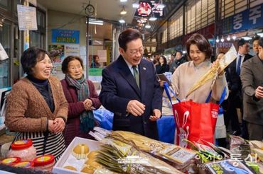 이 대통령 부부, 충북 전통시장 방문